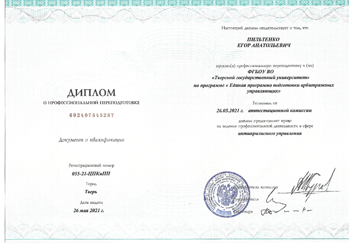 Член Адвокатской палаты Тверской области с 2010 года. Общий стаж юридической деятельности с 1999 года. Оказываю юридическую помощь по самым сложным делам в сфере уголовного, гражданского, арбитражного и административного судопроизводства. Защита интересов в области наследственного, земельного, семейного, жилищного, авторского права. Помощь в проведении любых видов оценки стоимости имущества, ущерба и экспертиз. Банкротство юридических и физических лиц с любым размером кредиторской задолженности (с участием высококвалифицированных арбитражных управляющих). По всем вопросам пишите мне в Telegram, на электронную почту или через специальную форму на моём личном сайте (ответ в течение рабочего дня).