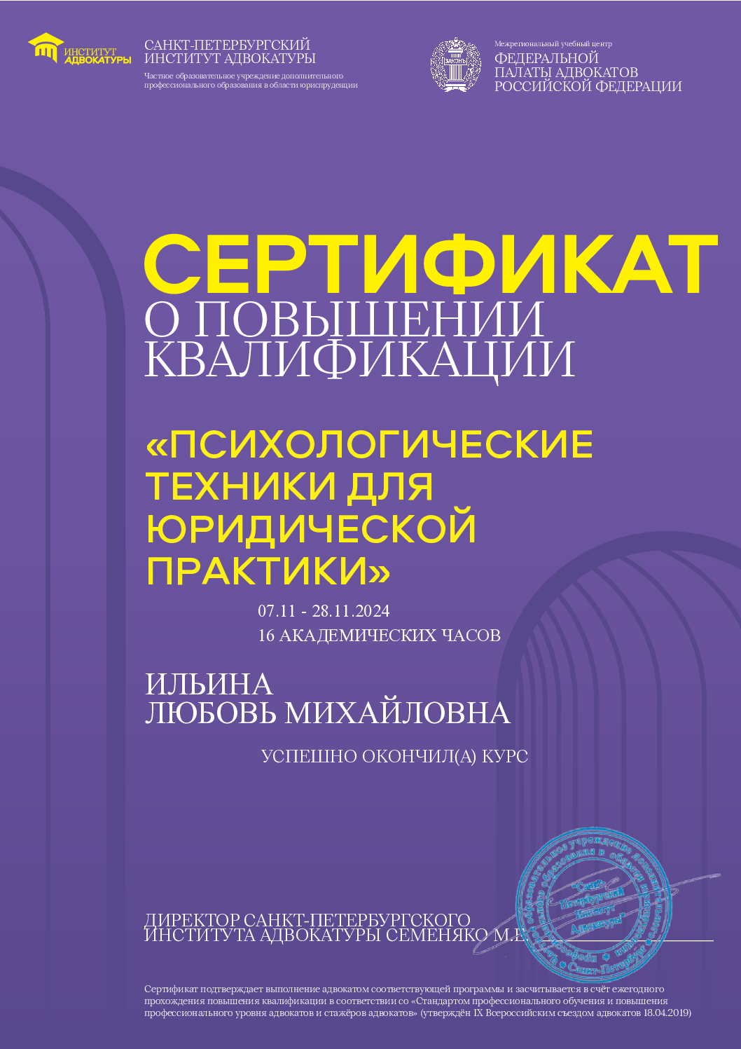 Адвокат - это профессионал, обладающий высокой квалификацией и опытом в области права, чья основная задача заключается в предоставлении юридической помощи и защите интересов клиентов.Каждый случай уникален и требует индивидуального подхода, поэтому прежде всего я внимательно изучаю обстоятельства дела и подбираю наилучшие варианты решения Ваших проблем. Юридический стаж более 18 лет, в статусе адвоката более 10 лет. Ведение уголовных, гражданских дел, а также помощь военным и их семьям. Обращайтесь и мы решим Вашу правовую проблему.