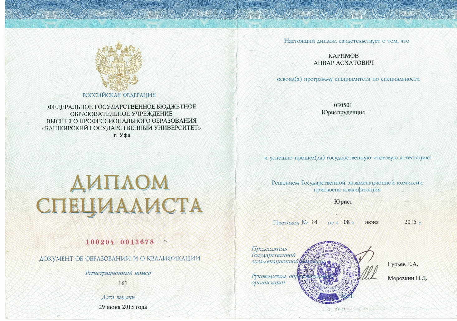 - высшее юридическое образование, окончил аспирантуру БГУ на кафедре "Гражданского права"