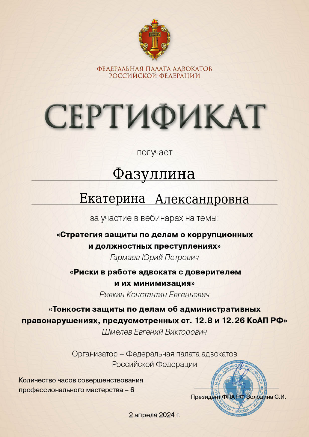 Я адвокат, специализирующийся, в первую очередь, в сфере уголовного права и процесса, с опытом работы в Следственном комитете Российской Федерации в должности старшего следователя. Срочная юридическая помощь по уголовным делам 24 часа в день / 7 дней в неделю (г. Уфа, Республика Башкортостан - очно, иные регионы - удаленно, с возможность выезда), представление и защита интересов граждан с любыми процессуальными статусами (в том числе потерпевших, свидетелей, подозреваемым, обвиняемых) в рамках как проводимой любыми правоохранительными органами доследственной проверки, так и по возбуждённым уголовным делам. Защита в судах первой, апелляционной и кассационной инстанция. Представление интересов граждан по гражданским делам, а также по делам об административных правонарушениях. Первая консультация по телефону, либо посредством мессенжджера, в любое время суток - бесплатно.