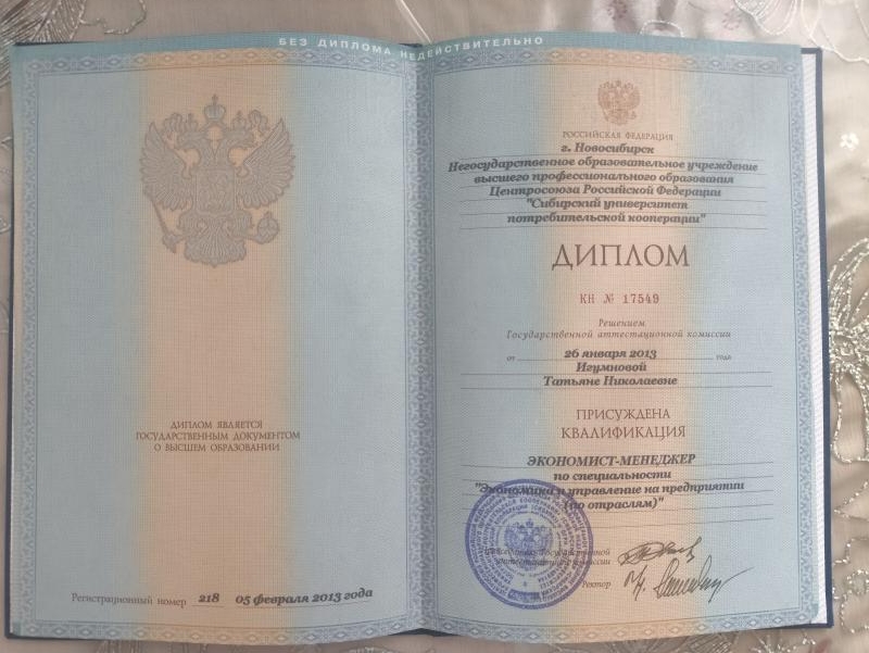 Сибирский Университет Потребительской кооперации — Экономика и управление на предприятии (по отраслям) — Новосибирск Специалист
