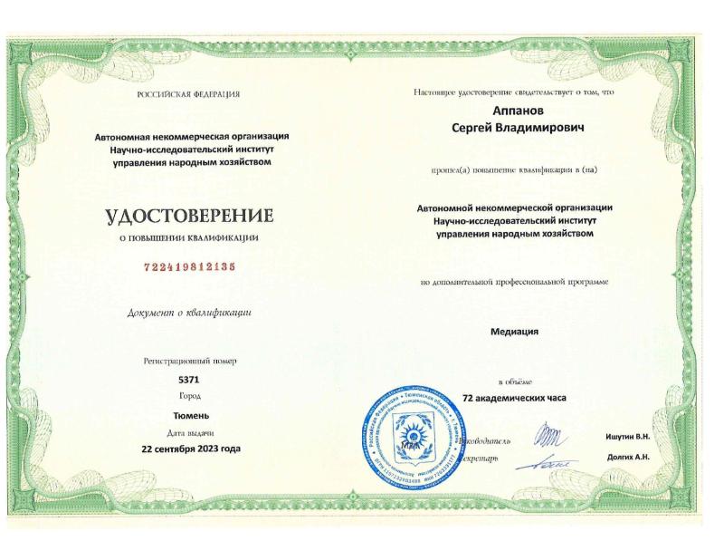 Сертификат медиатора