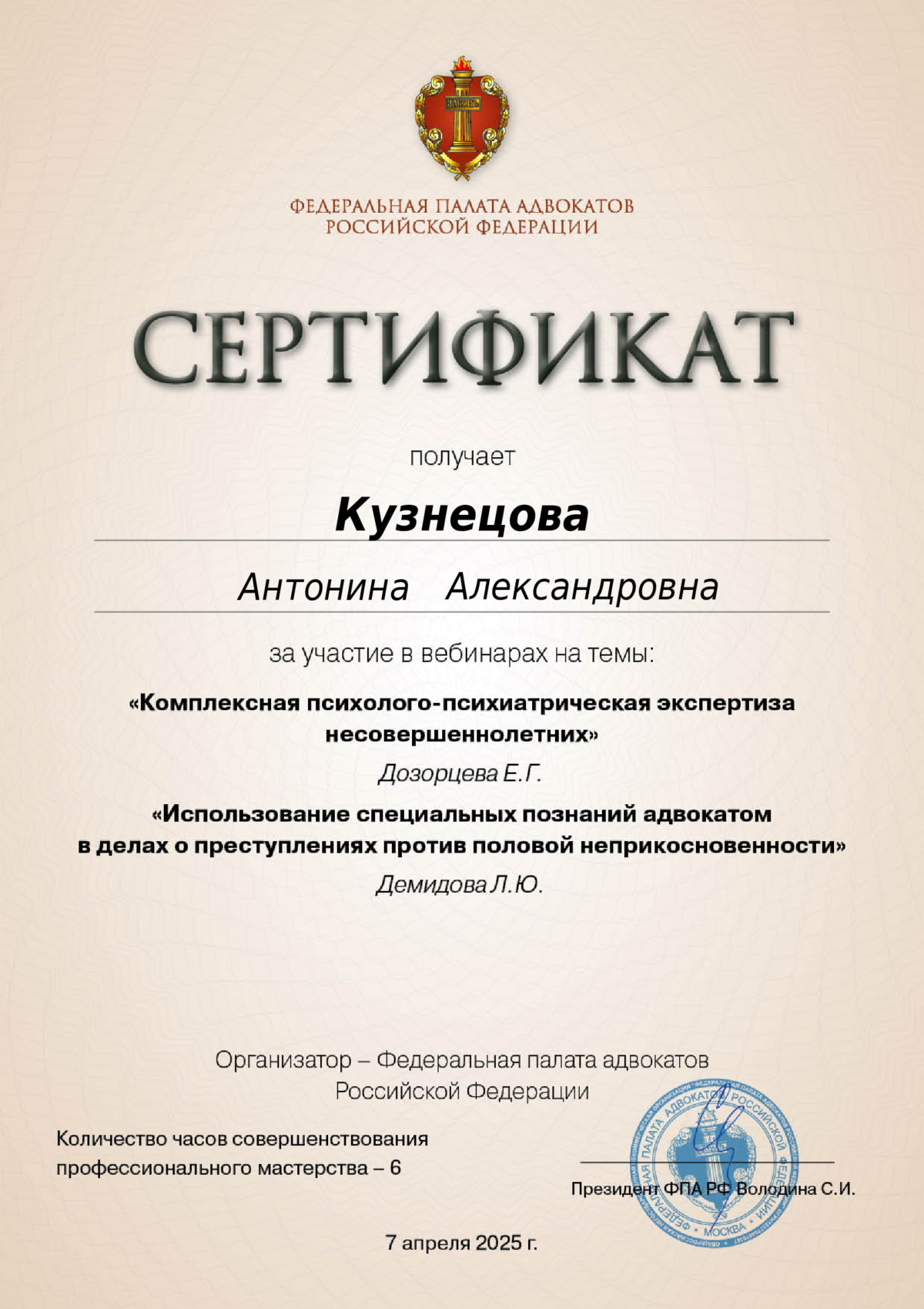 Профессиональный юрист с действующим статусом адвоката, специализирующийся на сложных категориях дел.