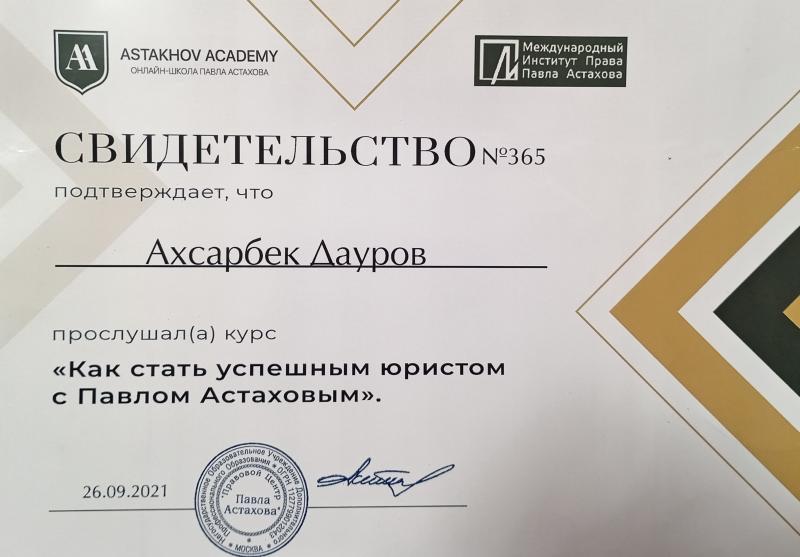 ЧЛЕН Ассоциации юристов России. РЕФЕРЕНТ государственной гражданской службы РФ 1 класса. Выпускник Академии Павла Астахова. Свыше 30 выигранных дел в судах общей юрисдикции г. Владикавказа и г. Москвы. Свыше 10 успешно завершенных дел о банкротстве. Имею большой юридический опыт
