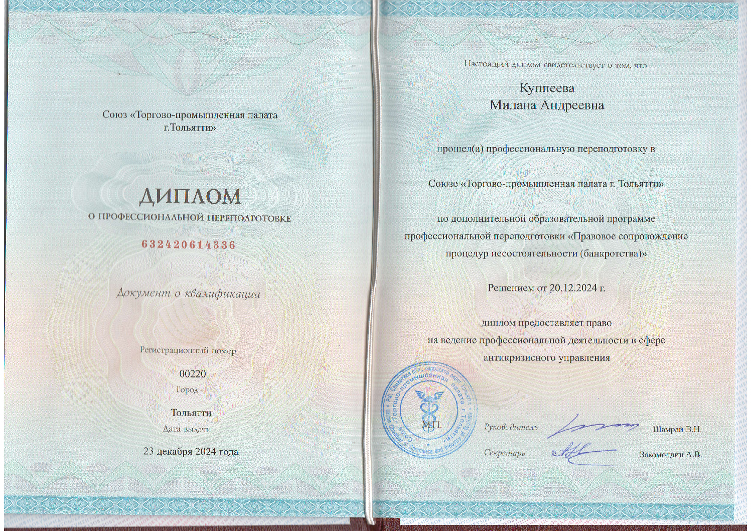 Арбитражный управляющий с более чем девятилетним опытом работы в юриспруденции и девятилетним стажем на руководящей должности в государственном учреждении. Опыт успешного ведения сложных дел, защиты прав и интересов клиентов в арбитражных судах, а также управления командами. Специализация на услугах банкротства без посредников, что позволяет значительно сократить затраты и упростить процесс. Высокий уровень профессионализма и ориентация на результат, применяя индивидуальный подход к каждому клиенту.