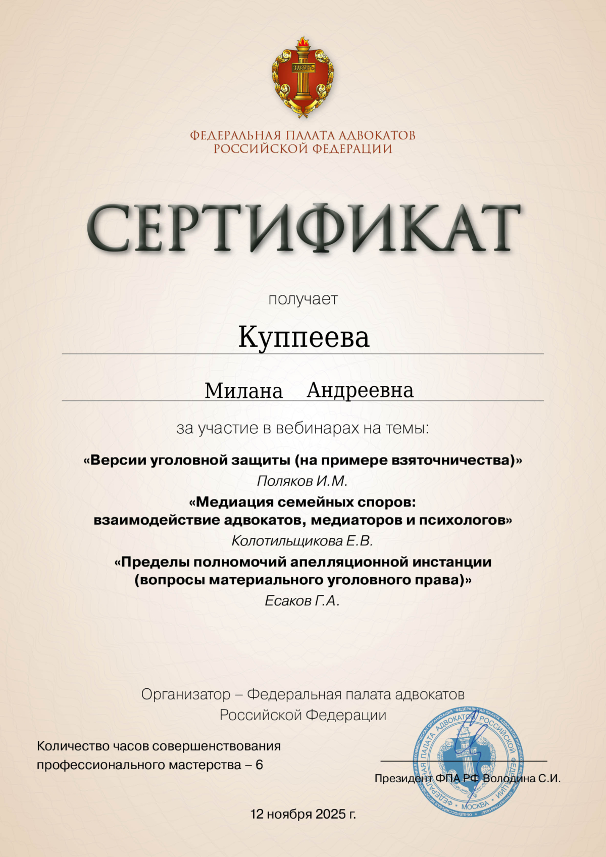 Я — профессиональный адвокат со стажем работы более 15 лет в области права. Моя цель — не только защитить ваши интересы в суде или на переговорах, но и предложить понятные решения даже для самых сложных правовых ситуаций. Гарантирую индивидуальный подход, конфиденциальность и настойчивость в достижении результата. Ваши права — моя главная забота.