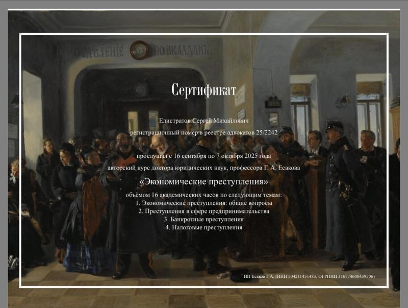 Я юрист, специализирующийся на сопровождении бизнеса и решении различных юридических вопросов. В своей практике я оказываю услуги по защите интересов клиентов в арбитражных судах, веду споры по взысканию задолженности, оспариванию сделок и налоговым претензиям. Кроме того, я занимаюсь проверкой договоров и контрагентов с учетом налоговых рисков, а также регистрацией различных организационно-правовых форм бизнеса — от ООО и ИП до фондов и товариществ.