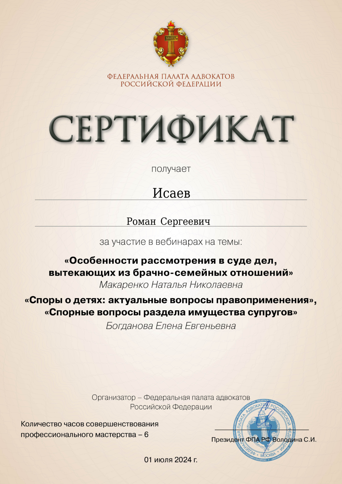 Список судебных дел в карточке адвоката может быть не полным и зависит от того, указан ли адвокат Исаев Роман Сергеевич в деле или нет