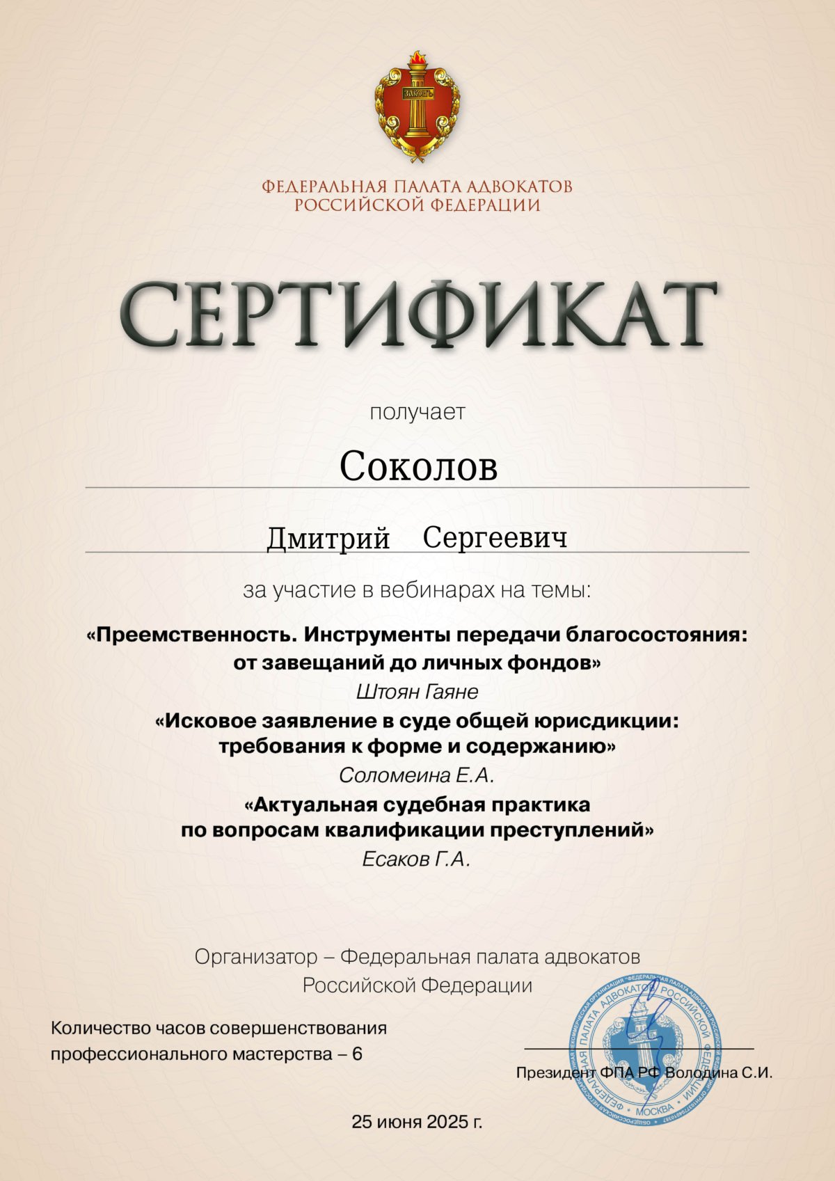 Имеет статус адвоката. Является юристом с опытом более 17 лет. Работал начальником юридического подразделения в коллекторском агентстве и крупного строительного холдинга. Специализируется на банкротстве физических и юридических лиц, арбитражных делах, брачно-семейных делах и при разделе имущества супругов. Также занимается регистрацией товарных знаков для бизнеса. Имеет большой опыт по юридическому сопровождению организаций, по регистрации и ликвидации компаний и по разрешению корпоративных вопросов.