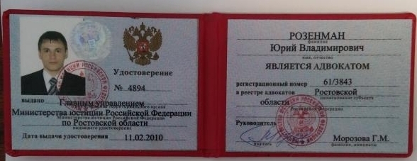 Подтверждено Минюст РФАдвокатСтатус адвоката:
