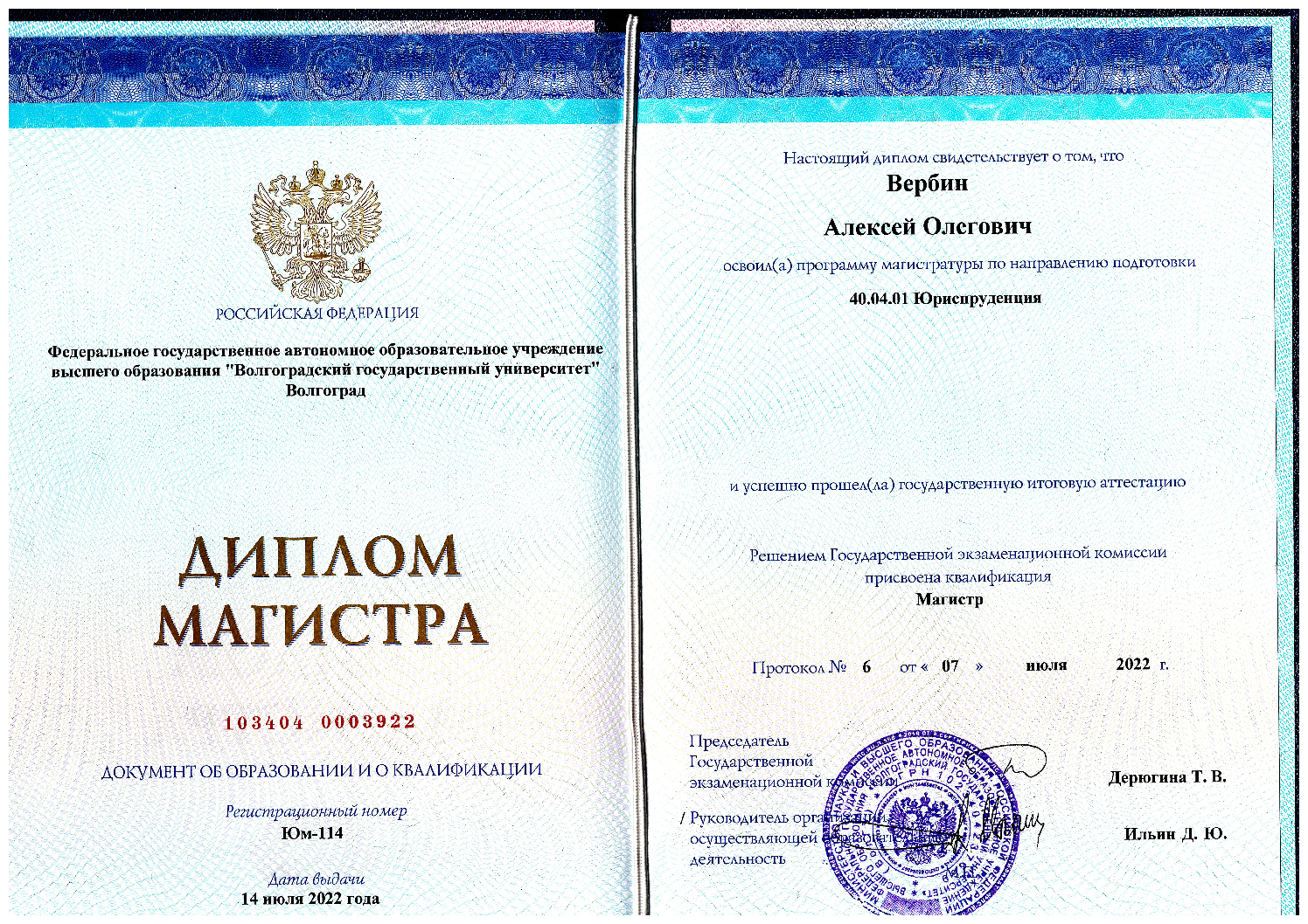 Меня зовут Вербин Алексей, я являюсь опытным юристом, специализирующимся в области интеллектуального права, гражданского права, трудового, международного, корпоративного, цифрового права, а также защиты персональных данных .