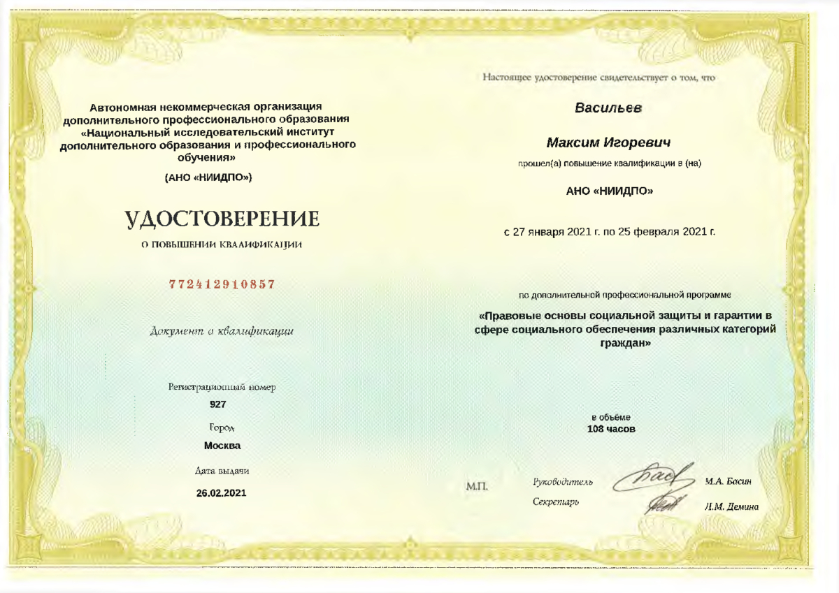 Правовые основы социальной защиты и гарантии в сфере социального обеспечения различных категорий граждан - Москва