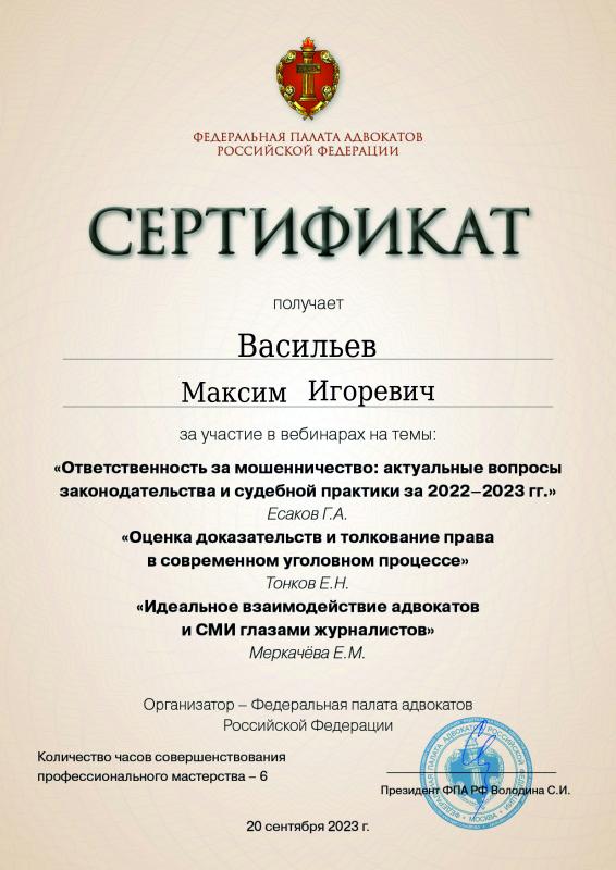 Список судебных дел в карточке юриста может быть не полным и зависит от того, указан ли юрист Васильев Максим Игоревич в деле или нет