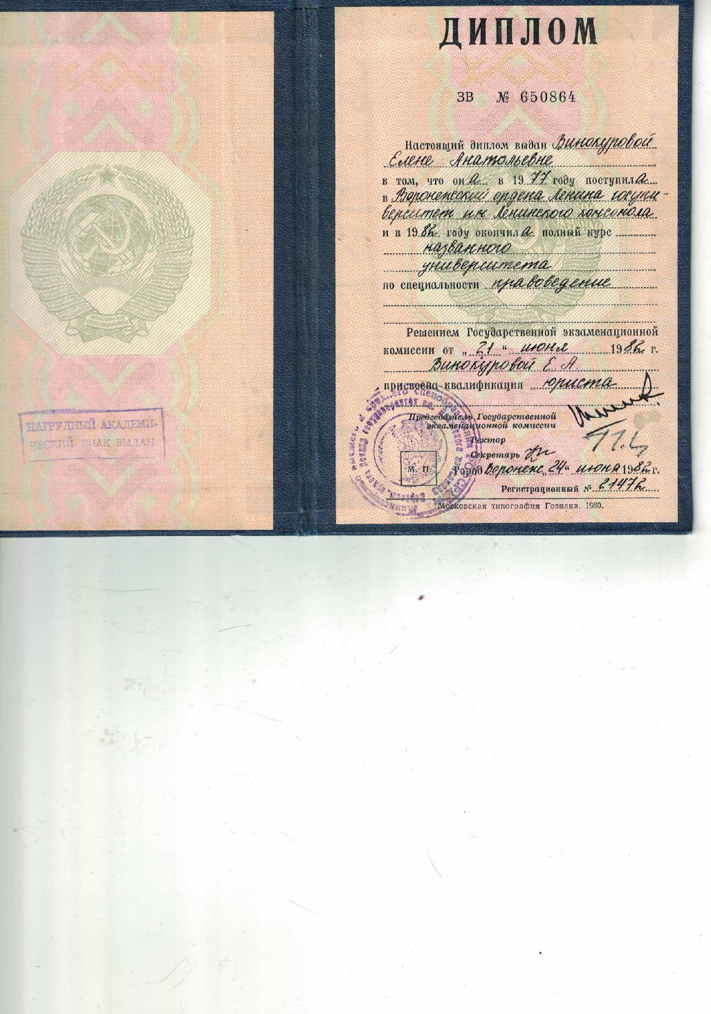 Окончила Воронежский государственный университет юридический факультет в 2016 г. Являюсь магистром трудового, социального и земельного права. Стаж юридической практики свыше 9 лет. Имею большой опыт в разрешении трудовых споров, в том числе по вопросам восстановления на работе; взысканиия заработной платы; обжалования дисциплинарных взысканий.