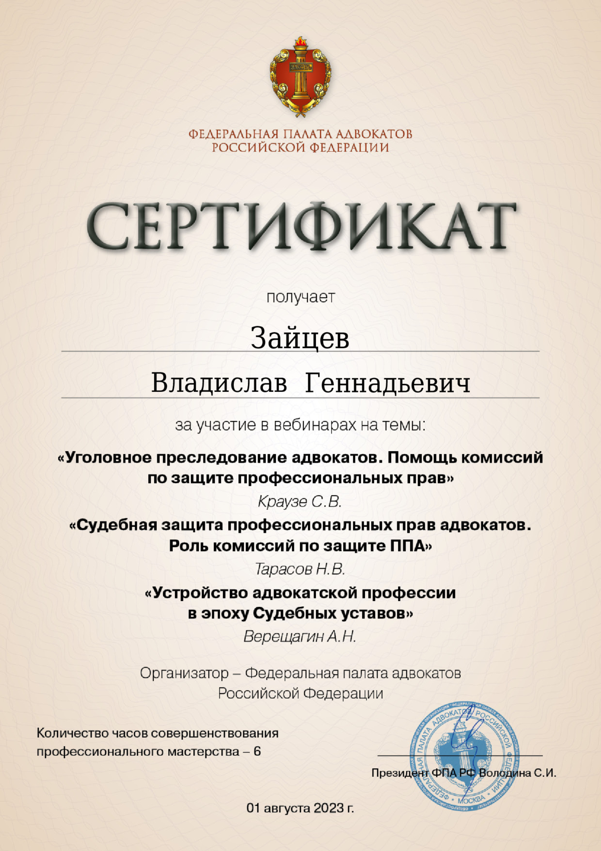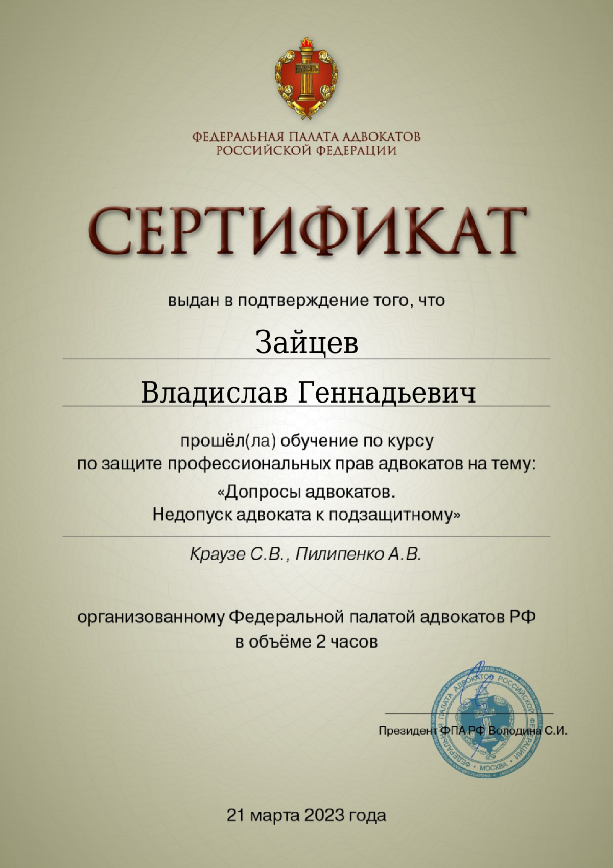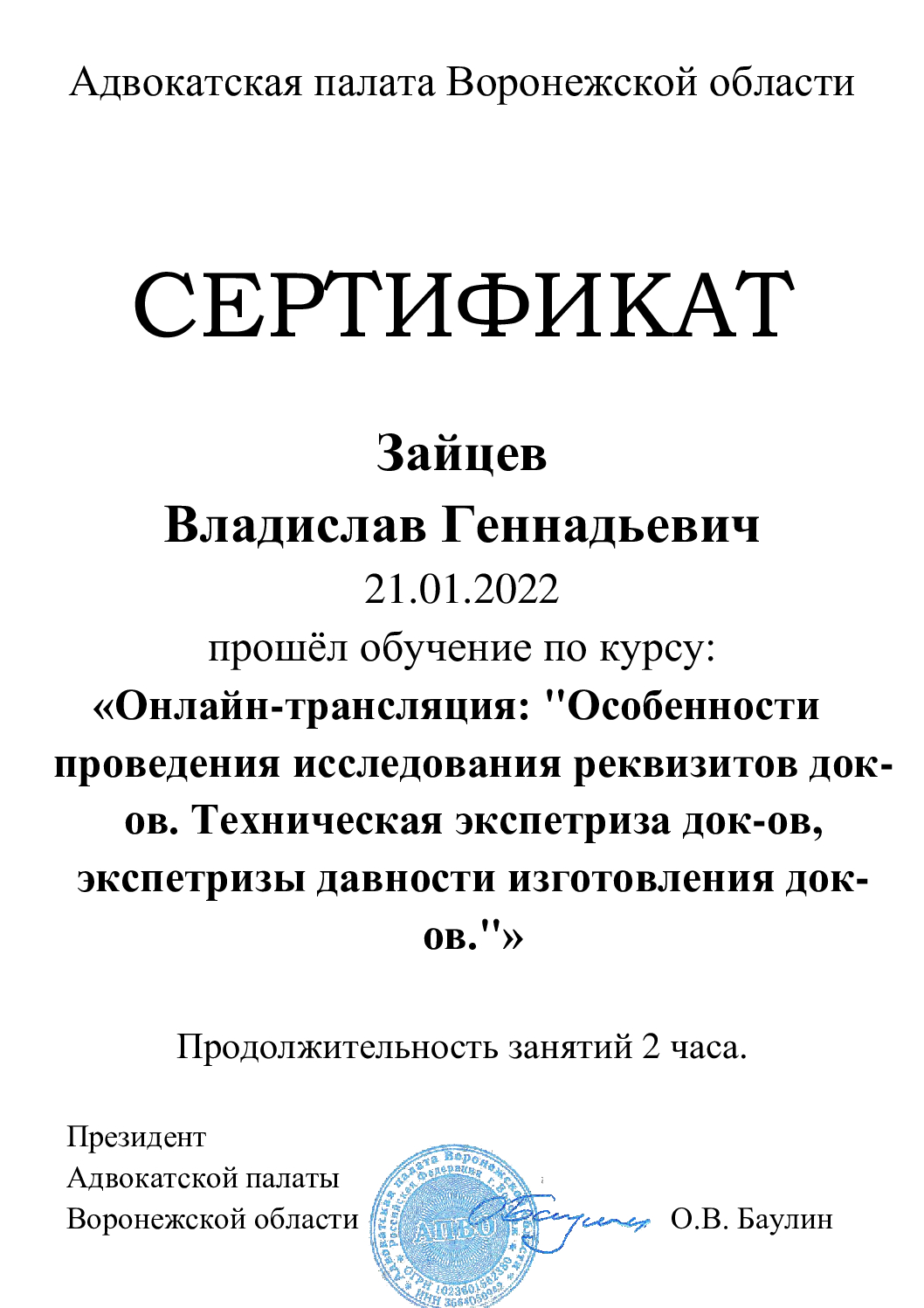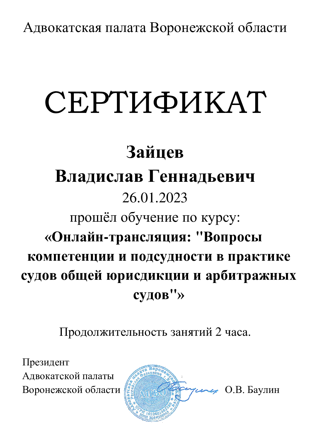Здравствуйте! Меня зовут Аушев Сергей Александрович, я являюсь адвокатом. Имею опыт юридической практики с 2011 года, длительный период времени успешно проходил службу в контрольно-надзорных органах. Защита по уголовным делам. Представительство в судах общей юрисдикции, арбитражных судах. Обжалование действий (бездействия) органов государственной власти, должностных лиц. Консультации осуществляются как на личном приеме, так и дистанционно, по предварительной записи. С Уважением, С.А. Аушев.