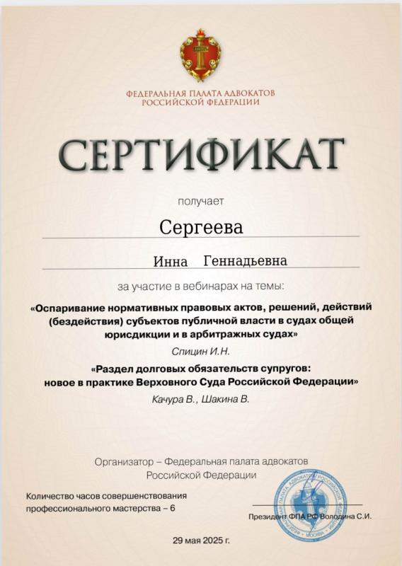 Адвокат по семейным и наследственным делам, член Адвокатской палаты Воронежской области. Регистрационный номер в реестр адвокатов 36/2136. Профессиональный стаж 15+ Эксперт проекта "Адвокаты-гражданам" и автор публикаций в "Адвокатской газете".