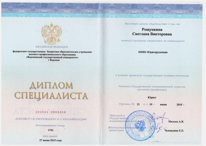 Являюсь адвокатом Воронежской областной коллегии адвокатов.
