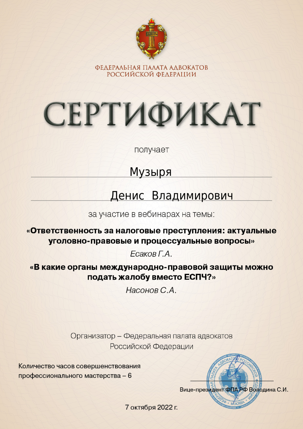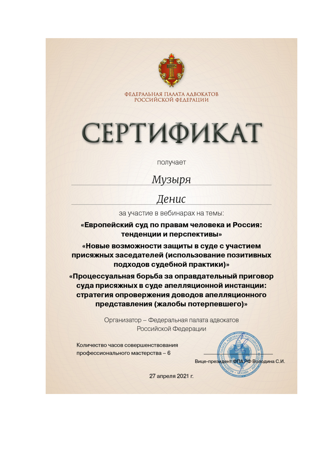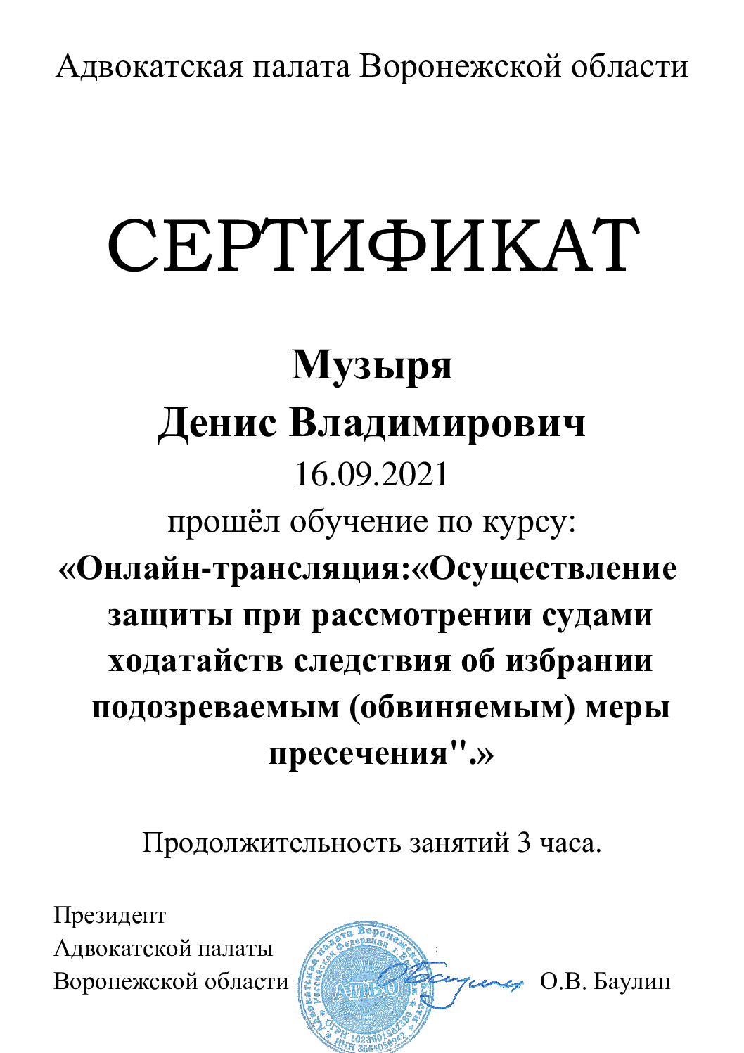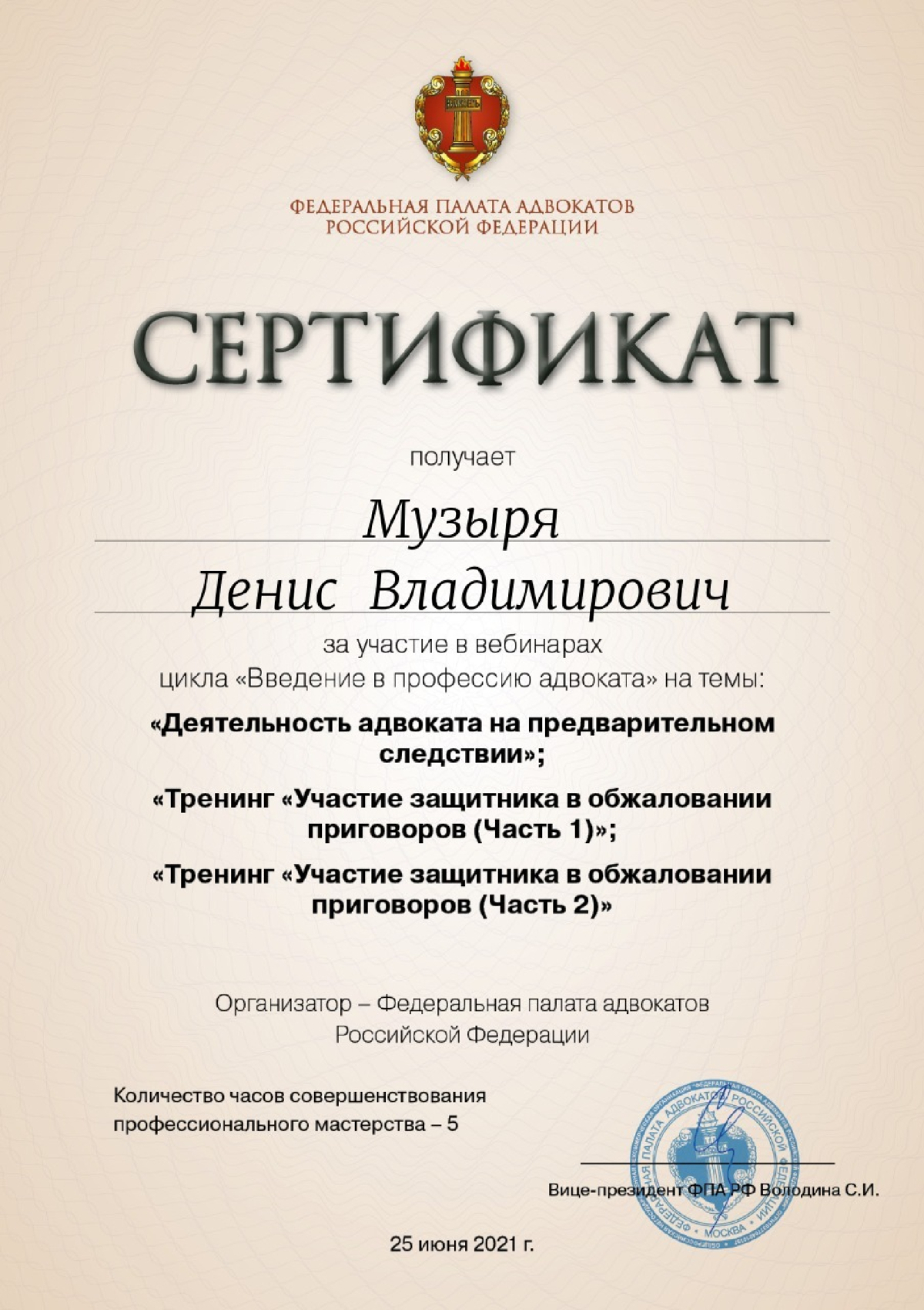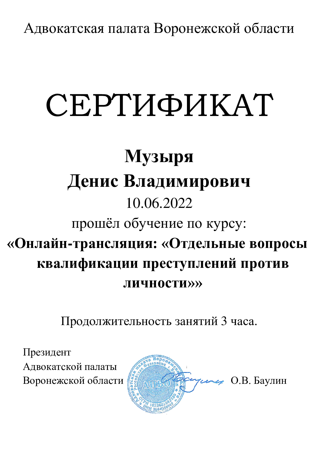 Подтверждено Минюст РФАдвокатСтатус адвоката: