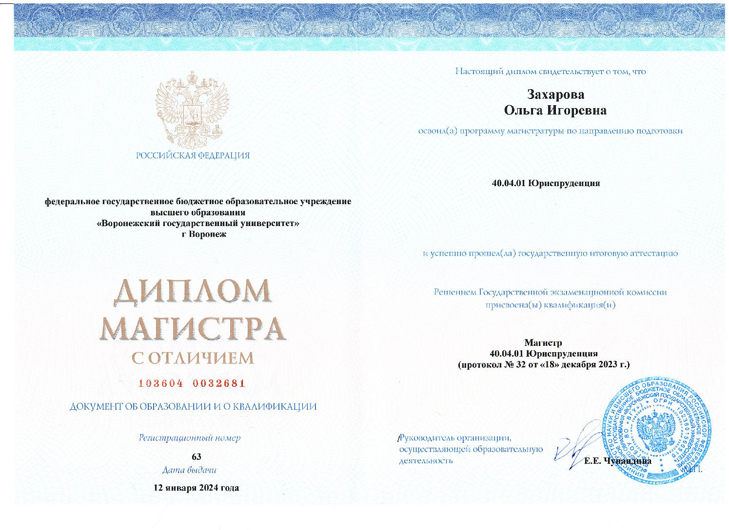 Воронежский государственный университет — Юриспруденция — Воронеж Магистр