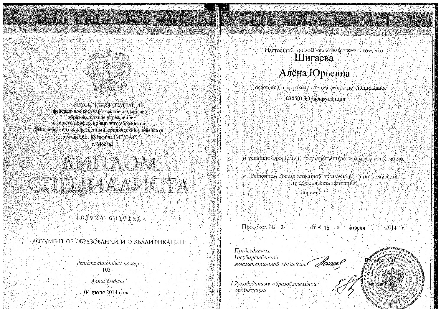 Добрый день. Я юрист с опытом работы по юридической специальности. Имею высшее юридическое образование (специалист) – Северо- Западный институт (филиал) Университета имени О.Е.Кутафина (бывшая МГЮА). Предлагаю весь комплекс юридических услуг для юридических и физических лиц от составления документов любой сложности до разрешения спора в суде и исполнения решения суда в рамках исполнительного производства.