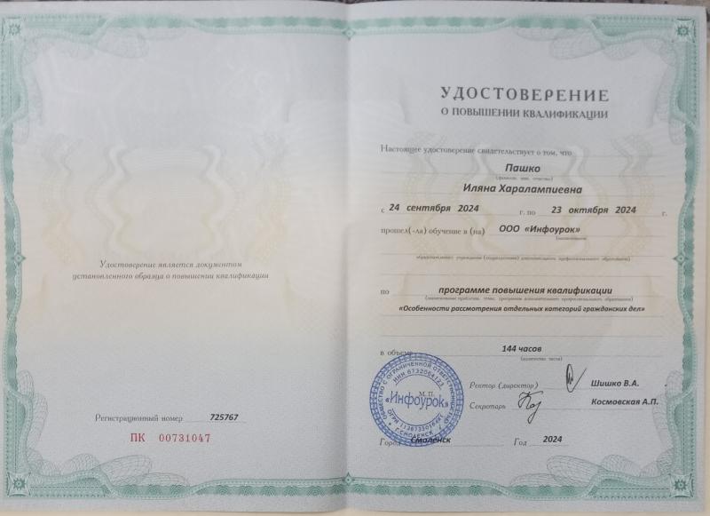 Хочется выразить огромную благодарность Иляне Пашко за её профессионализм и высокий уровень юридической компетенции!