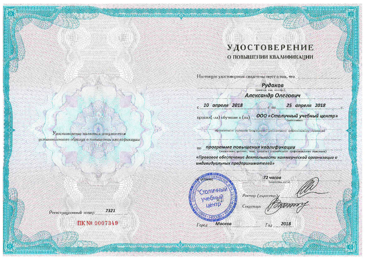 Я занимаюсь юридической практикой более 15 лет (сопровождение Вашего дела во всех судах и на всех стадиях процесса: арбитражная практика, гражданские споры, корпоративное право, уголовно-правовая, административно-процессуальная деятельность). Юридический стаж 17 лет. В своей деятельности применяю проверенные и эффективные методы для достижения поставленных задач. Рад видеть в числе своих клиентов компании, активно работающие в правовом поле и стремящиеся к завоеванию рынка, и начинающих предпринимателей, которые только начали своё дело. Моё предложение. Своим клиентам я предлагаю полный спектр услуг с возможностью выбора от единичной (разовой) услуги до комплексного обслуживания. Мой подход к работе с клиентами отличается широким набором и постоянным обновлением предлагаемых услуг.