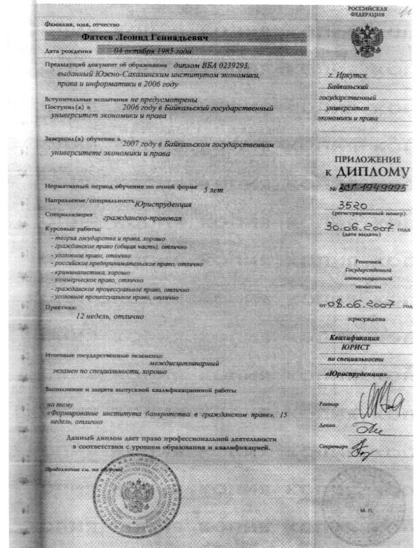 Образование: Байкальский государственный университет экономики и права в 2007 году