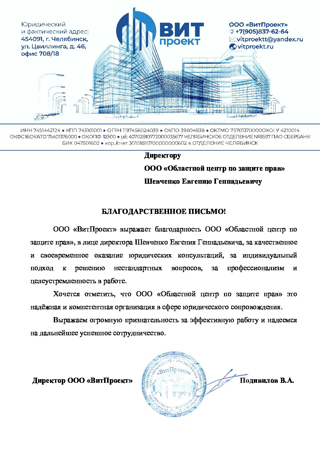 Моя фирма оказывает широкий спектр юридических услуг. Совмещаем профессиональный подход в решении Вашей проблемы с выбором оптимального решения. Работаем по всей России. Офис находится в Калининграде. Оказываем дистанционные консультации по телефону, Skype, WhatsApp, Viber. Отличаемся от других, персональным подходом к каждому клиенту. Подстраиваем взаимодействие с клиентом под его ритм жизни.